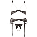 Features: Wireless bra, suspender belt and string with decorative pearls